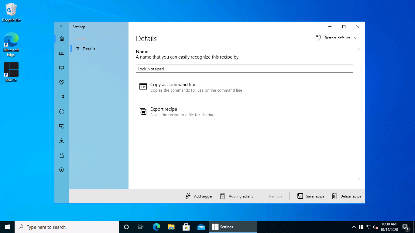 Name your recipe and add a trigger